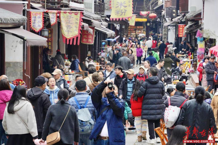 (靖港古镇元旦期间游客如织。通讯员供图。)
