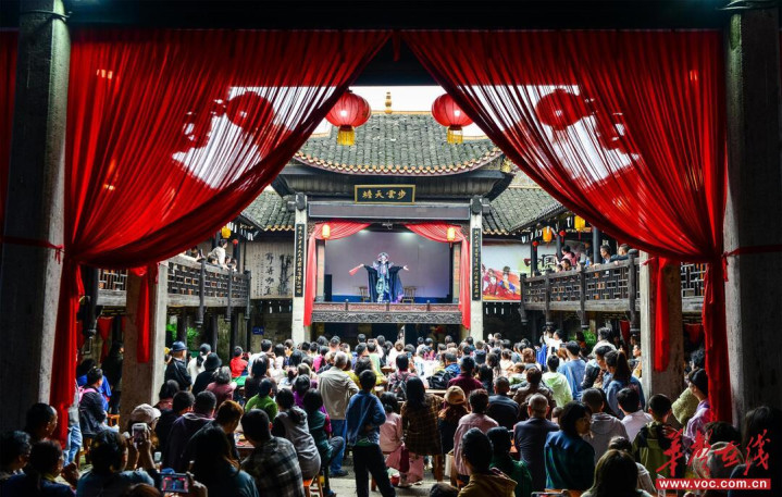 (游客在八元堂观看变脸表演。通讯员供图。)